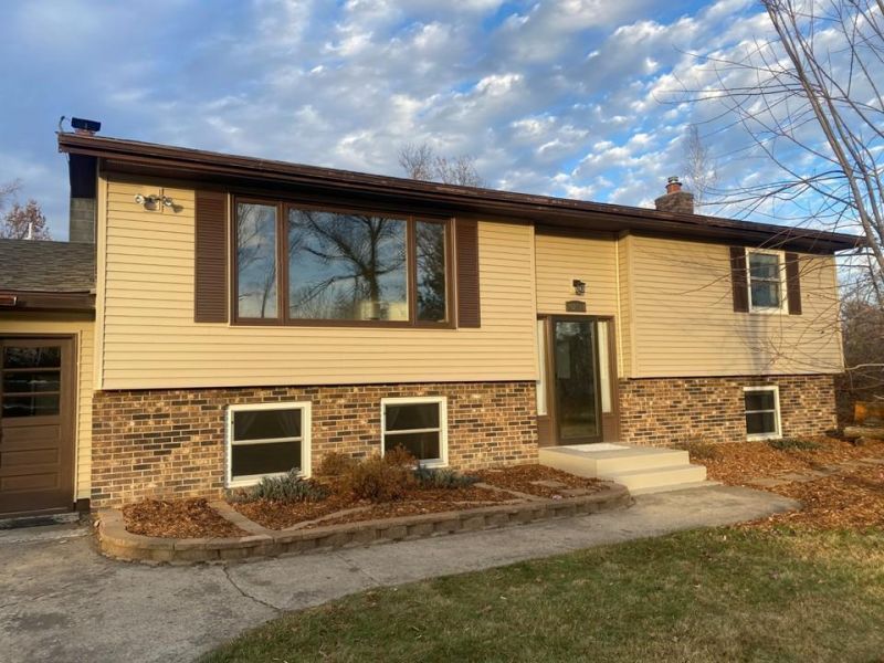 Spacious home on 1+ acre lot. New siding and new roof. Split entrance with 3 bedrooms and a full bath on the main level. The lower level has 1 large bedroom, 3/4 bath, and a large family room with a gas fireplace. Double-attached garage with entrance to the lower level. Two-level deck overlooking spacious fenced backyard. The septic system was recently inspected and certified as compliant. Three fruit-bearing apple trees. Seller is offering a carpet allowance.